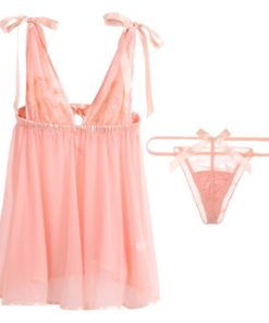 背中にも肩ストラップにもリボンがついた、ガーリーなデザインのベビードールです。